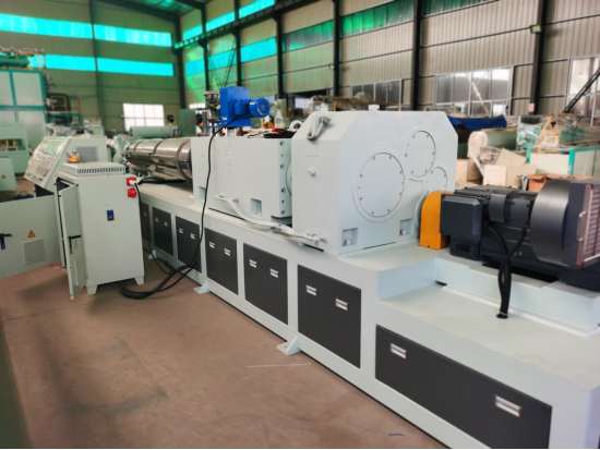 3、設備采用92雙螺桿擠出機,生產異型中空壁設備。